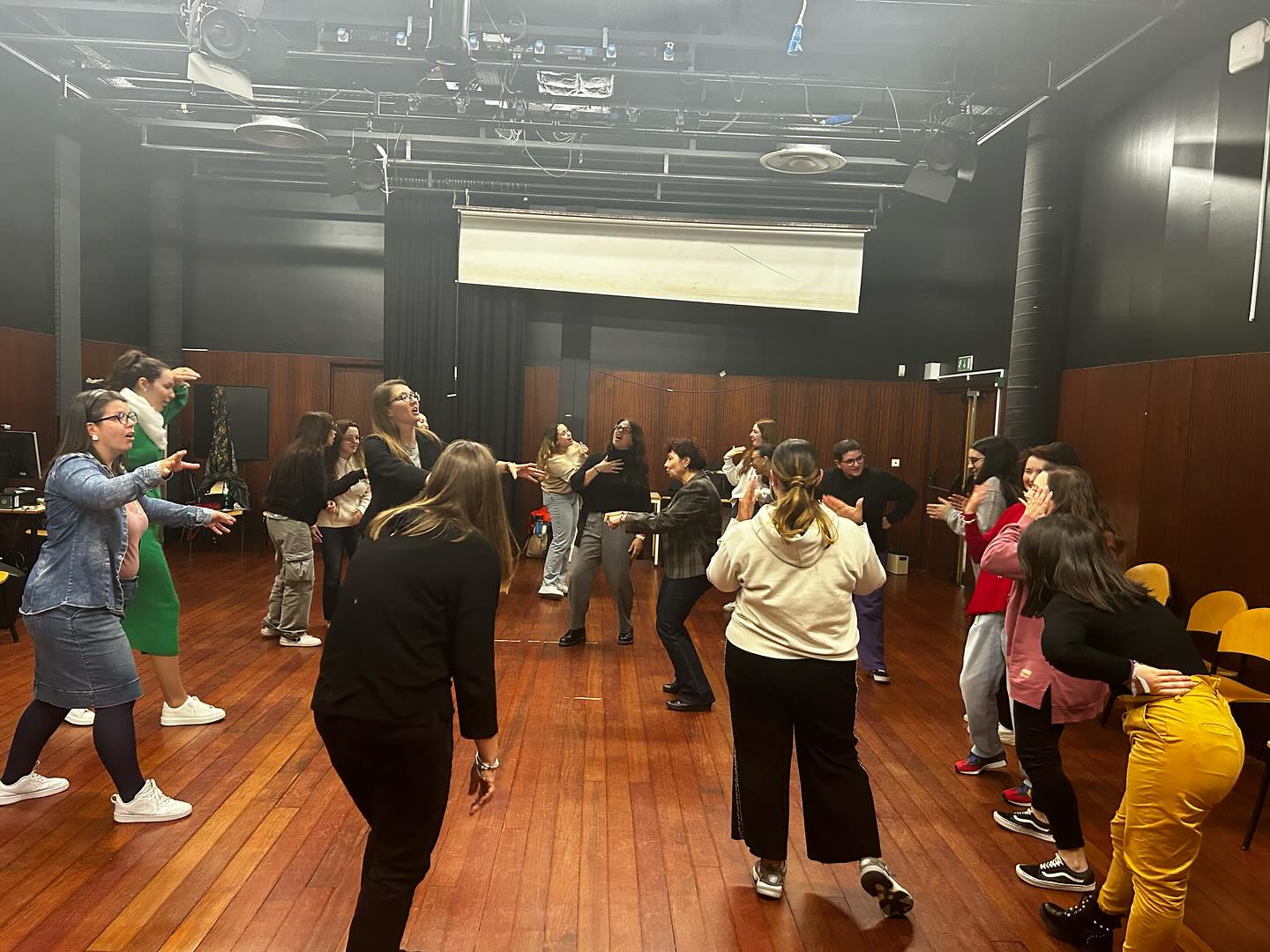 Poslednjeg dana obuke u Portu, pripremale smo završno izvođenje primenom tehnike “forum teatra”. Sve što smo naučile na obuci prethodnih dana, primenile smo u praksi. U publici su bile studentkinje Pedagoskog fakulteta, buduće “socijalne edukatorke”. Forumovale smo na temu vršnjačkog nasilja na društvenim mrežama, dobile pohvale za izvodjenje i odlične povratne informacije za kraj.